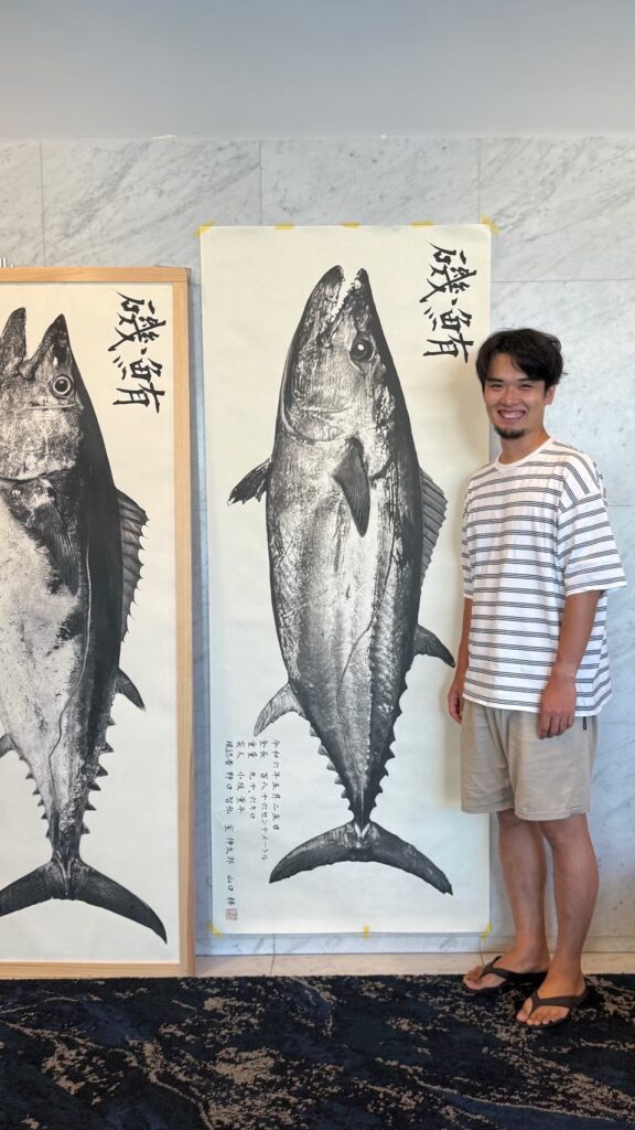 これまでの会場で最高な写真を撮ってくれていた野口カメラマンが名古屋で離脱したことにより、監督・室のピン写でご愛嬌。こいつが横に立つと魚が小さく見えて困るんだよなぁー。主役は魚なのに!