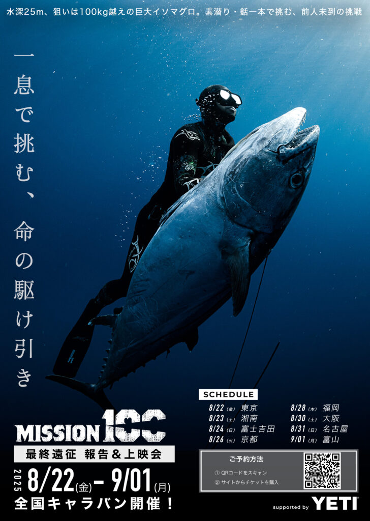 ここで富士吉田とM100の縁について。2022年秋、漁師さん伝に新たなマグロポイントの情報を耳にし、ある島を訪れました。僕と野口カメラマンの二人は、島で出会ったユミちゃんと意気投合。