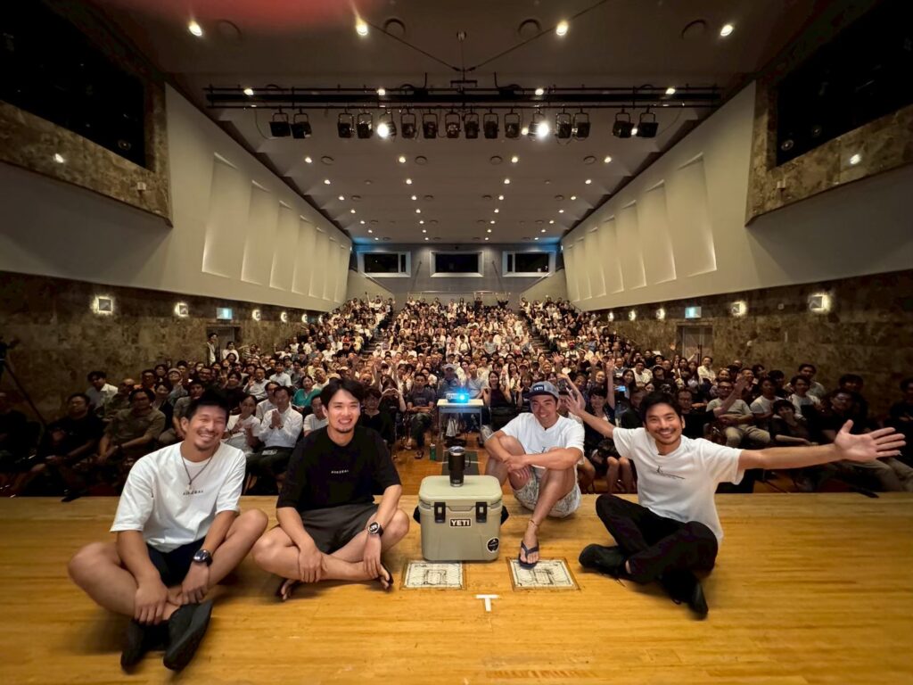 相模湾に沈むサンセットを横目に上映会。ロケーションが良すぎる!